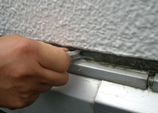 • チョーキング 外壁を軽く手でこすって白い粉がつく状態をチョーキングといいます。塗装の耐久度が限界に達している証拠です。