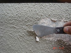 ・外壁の塗膜が下地から剥離しているため、剥離部分は旧塗膜を全て剥がすために、ケレン作業を行いました。