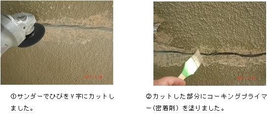 ・大きいひびはVカットを行い、今後ひびが出ないような処理を行いました。