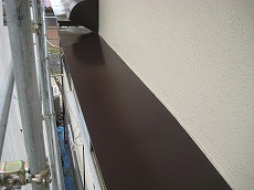 ・ケレン後下塗りし、密着性を高めるために240番のペーパーで細かい傷をつけた後、中塗り・上塗りを行いました。【シリコンセラUV】