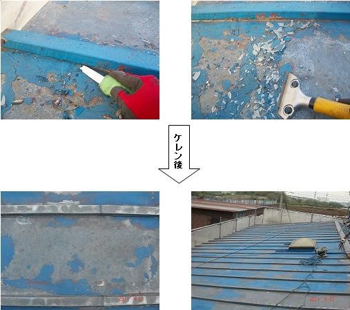 ・ほとんどの塗膜が下地から剥離していたため、旧塗膜を剥がす(ケレン)作業を念入りに行いました。
