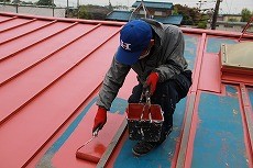 ・棟押えの釘と瓦棒の釘が、浮いていたり抜け落ちている箇所があり、一部雨漏りが見られました。